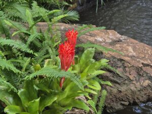 It’s a Flaming Torch Bromeliad – quite eye-catching! There are dozens (hundreds?) of varieties of bromeliads here. Many of them have razor-sharp edges to their leaves. What a shocker, another item that can maim you in Australia 🙂