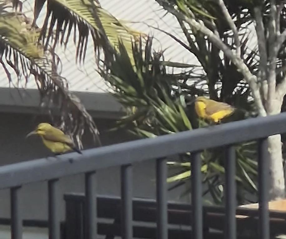 These are little Olive-Backed Sunbirds. We saw a male one when we were at Tanby Nursery one day last year (the males have a bright blue throat) but hadn’t seen the females and had never seen any at our house. They’re really cute!