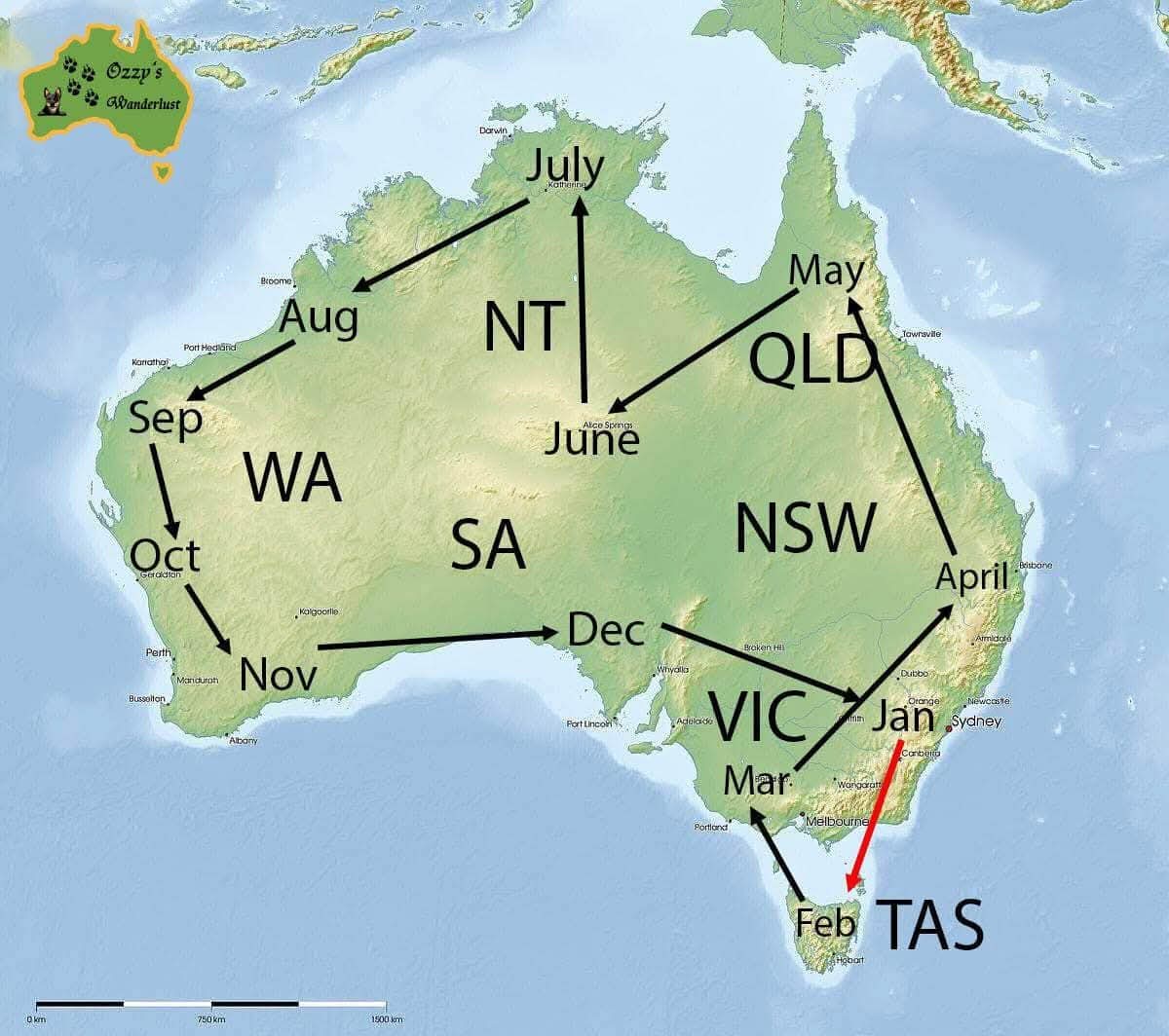 - Going north (north Queensland, north Western Australia, Northern Territory) in the winter (Jun-Aug) to avoid the crushing heat and humidity and rainy/cyclone-y season,