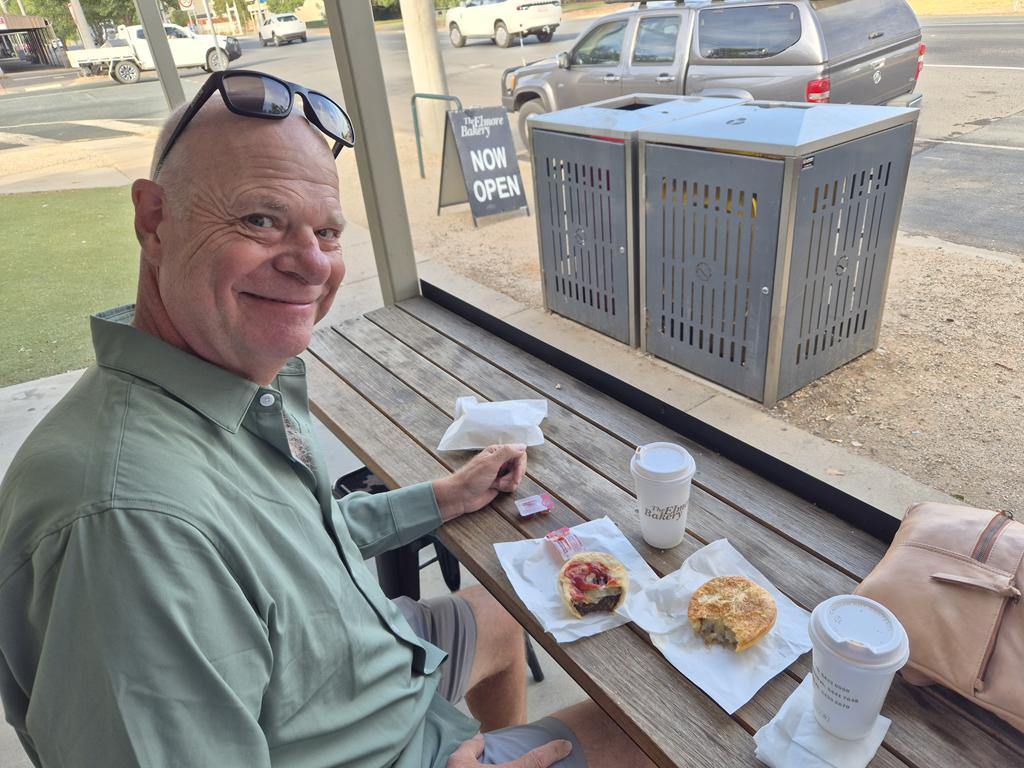 We have definitely adopted the Aussie tradition of eating meat pies with our hands for breakfast! That’s correct, you just pick them up and bite into them – no knife or fork. This obviously requires careful coordination to not have the filling spill everywhere, but we’re getting better at it! Our friend Ruth pointed out that only Hugh is doing it 100% Australian – because he spread “sauce” (ketchup) on top of his pie (gross). If we could get mushy peas on top, that would be even more perfect, per both Kevin and Robyn. Alas, mushy peas were not available at this bakery. Can’t even imagine how messy that would be to eat with your hands!