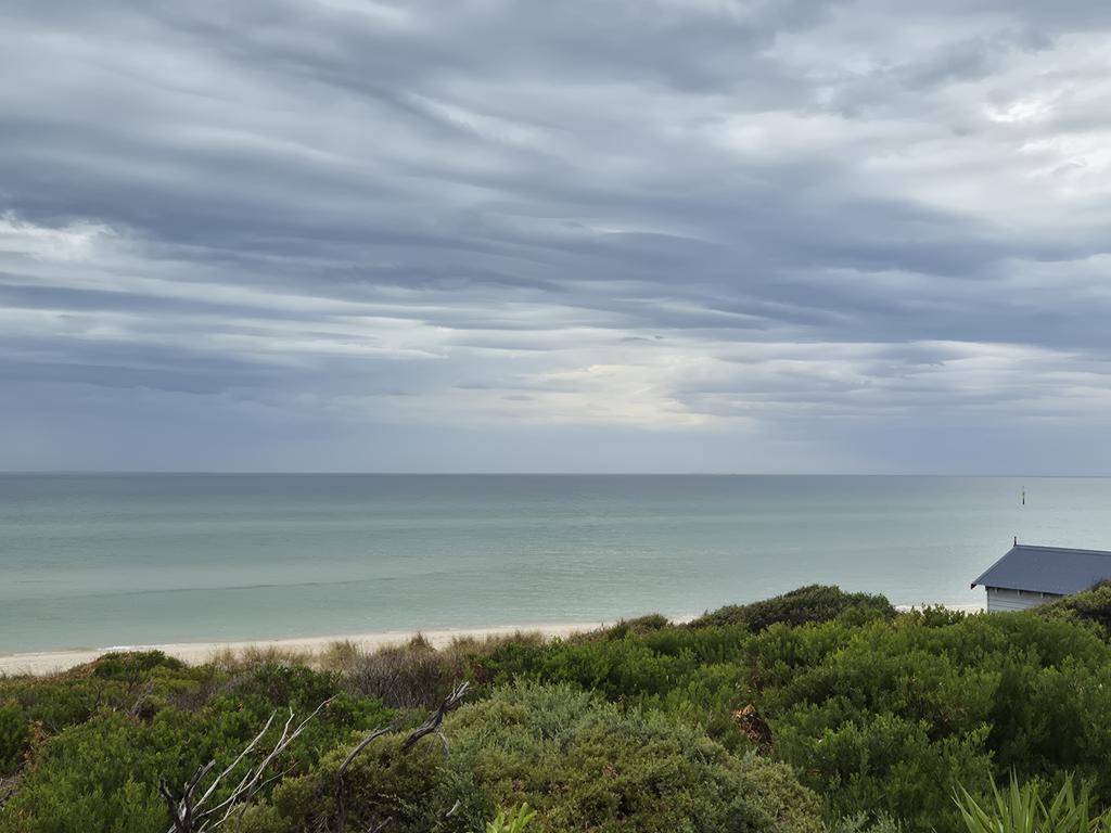 When Hugh and Rob were golfing, Lyn and I went down to Sorrento and spent a couple hours at a great spa there. We also all went for walks on the beach – despite the cold wind! Melbourne was 32C when we arrived at noon on Wed but the temps dropped like a rock that afternoon and barely got over 18C the rest of our visit. Melbourne is known for its wildly fluctuating weather (which you would’ve noticed if you watched the Australian Open this year: 42C one day, 23C the next). Exhibit A, sideways driving rain: