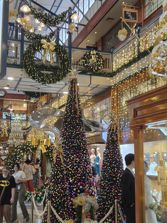 We flew to Brisbane first (that is the start of every trip when you live in regional Queensland!). We had a couple hours to kill between flight arriving and my doctor’s appointment, so we wandered around a mall area in the CBD (that’s Aussie for downtown – central business district). Lovely Christmas lights everywhere: