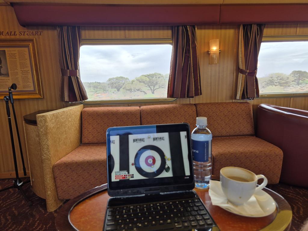 The lounge car on the train had wifi (as long as the train was going through somewhere that had a cell signal) so we were able to watch some of the Canadian curling trials while going through the Australian desert:
