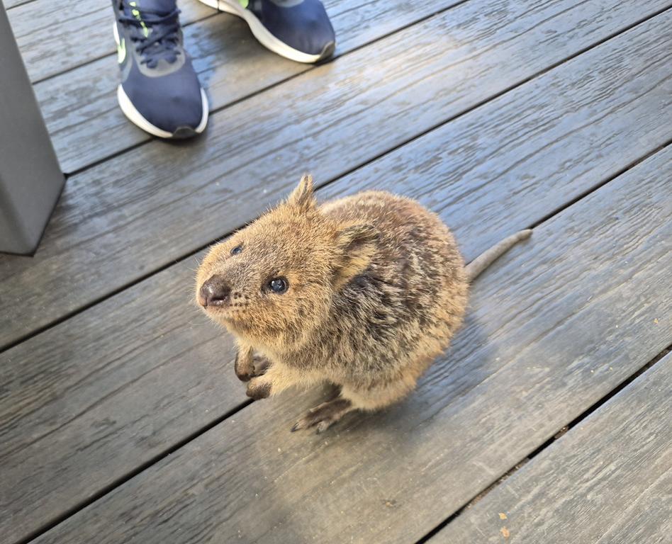 At the visitor centre, a volunteer told us the critical information about finding quokkas. There are about 15,000 of them on the island. You can find about 1,000 of them scattered around, most easily seen at dusk. And the other 14,000 are at the bakery ๐ Well, that was good advice – we saw heaps of them at the bakery where we had breakfast and didn’t see a single one the rest of the day across the island! They are indeed VERY cute: