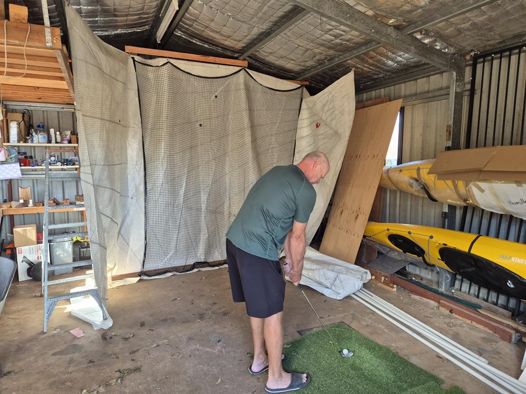 I mentioned in the last blog that Hugh and his mates are turning half our shed into a golf simulator. And of course it’s therefore called The Stimulator (why is it that everywhere I go, I meet friends with the same dirty minds… don’t answer that!). Despite having perfect weather the great majority of the time here, there are occasional rainy days when the guys need somewhere to hit golf balls, and it’s nice to have a practice range in your own backyard. Sigh.