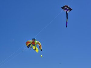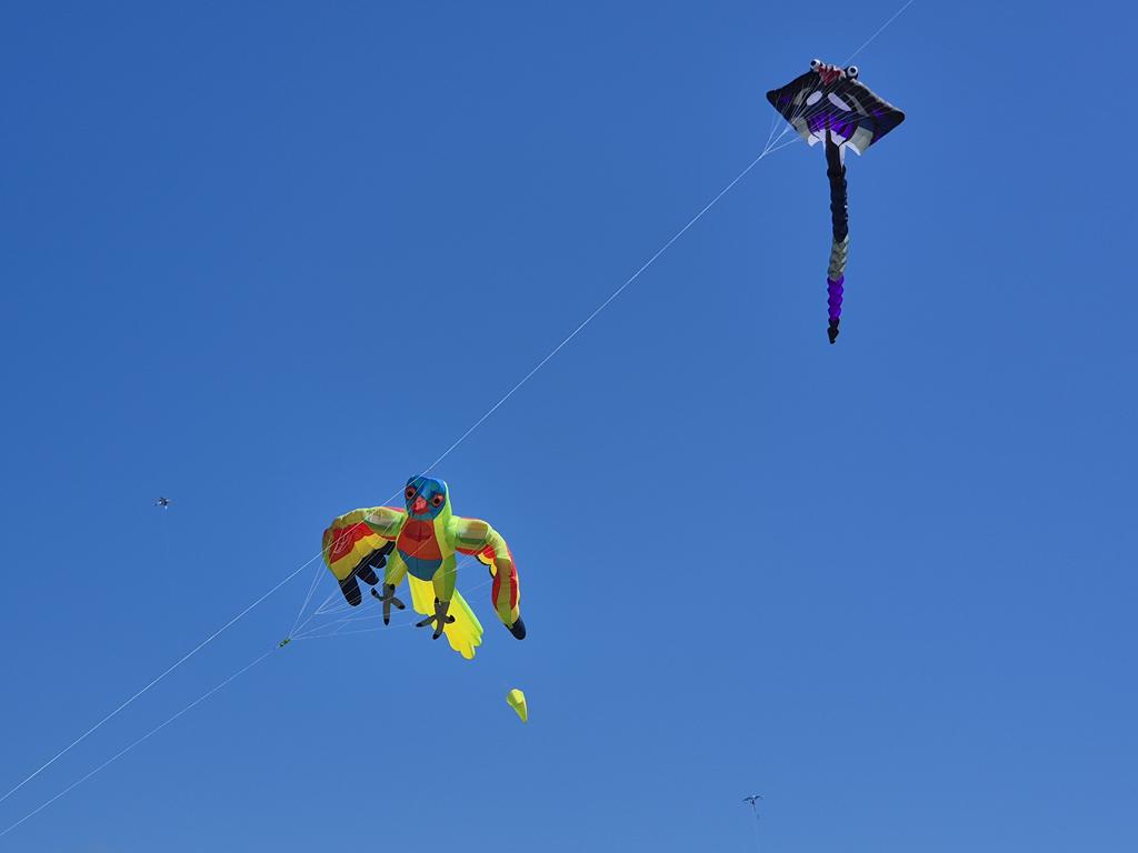 And the people who had the kite with the stingray and lorikeet were working hard to get the next one added to the row (looks like a raptor of some sort):