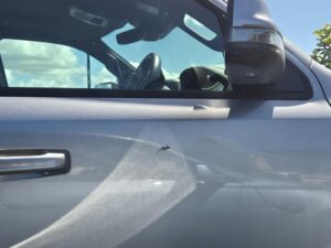 Zoom in. That’s a little tiny gecko on the door of an SUV parked at Bunnings. Would love to know how he ended up there! Speaking of baby geckos, we found one in our bed one night (we’ve had a lot in the house recently). Good thing we’re not freaked out by them, but they’re quick so Hugh has had to develop a system to live catch and release them.
