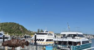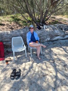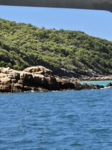 I took a Tuesday off the other week so Hugh and I could use a voucher (Aussie for gift certificate) we had won at a pickleball event a year ago and do the Freedom Fast Cats Combo Cruise. We are very fortunate to have friends with boats, so we have never actually taken a ferry to Great Keppel Island before. We really didn’t have high expectations but just wanted to use the voucher. Well, it ended up being a fantastic day and I definitely recommend doing the Combo Cruise! We had perfect weather – but the water was still churned up from all the wind and waves and the flooding from the Fitzroy dumping all sorts of debris into the ocean. Despite that, we still had good snorkeling on Monkey Reef and the glass bottom boat tour was a really pleasant surprise! The guide was a coral researcher, so we learned a lot, and it was actually a comfortable boat with great viewing windows. We learned that when the guide first moved to Yeppoon in 1999, the reef was down to 5% of its usual size, but today it’s back to almost 85%. We also learned that the white tips you see on coral is new growth (and we saw lots of white tips on this trip) and that coral is part animal and part plant. We knew that coral dies in the summer during low tides because it gets exposed but what we didn’t know is that clams squirt water on the coral when it’s exposed and this helps keep it cool. We also learned that flood waters that enter the ocean are devastating for coral – the freshwater alone can kill it but then add in the sediment and pollutants from flooding and it’s devastating. This is a reason they don’t like to encourage dredging here, because the sediment kills the coral. I had no idea.
