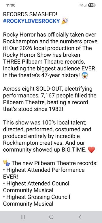 I had organised a group of 12 of us to go and we had a blast! I still think it’s funny that Rockhampton is called “Rocky”, which is the name of a character in it, and that the character Frankenfurter in the movie has the number 4711 written on his leg, which is a post code on the outskirts of Rockhampton. 4711 was actually the name of a popular unisex fragrance in the 70’s, but I feel like someone needs to invent an urban myth about the movie having some sort of secret tie to Rockhampton 🙂