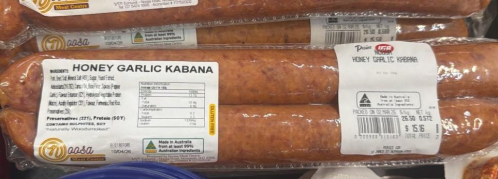 She said the Plain Kabana is good, but the Honey Kabana is fabulous. We agree! Most of our Aussie friends here had never heard of it either and the good brand is only carried at one supermarket chain and it’s not always stocked. But we now keep an eye out for it! I don’t think it exists in Canada? What about the UK? The size and texture is similar to Kolbassa (which you can’t get here) but the flavour is much better. A great find!
